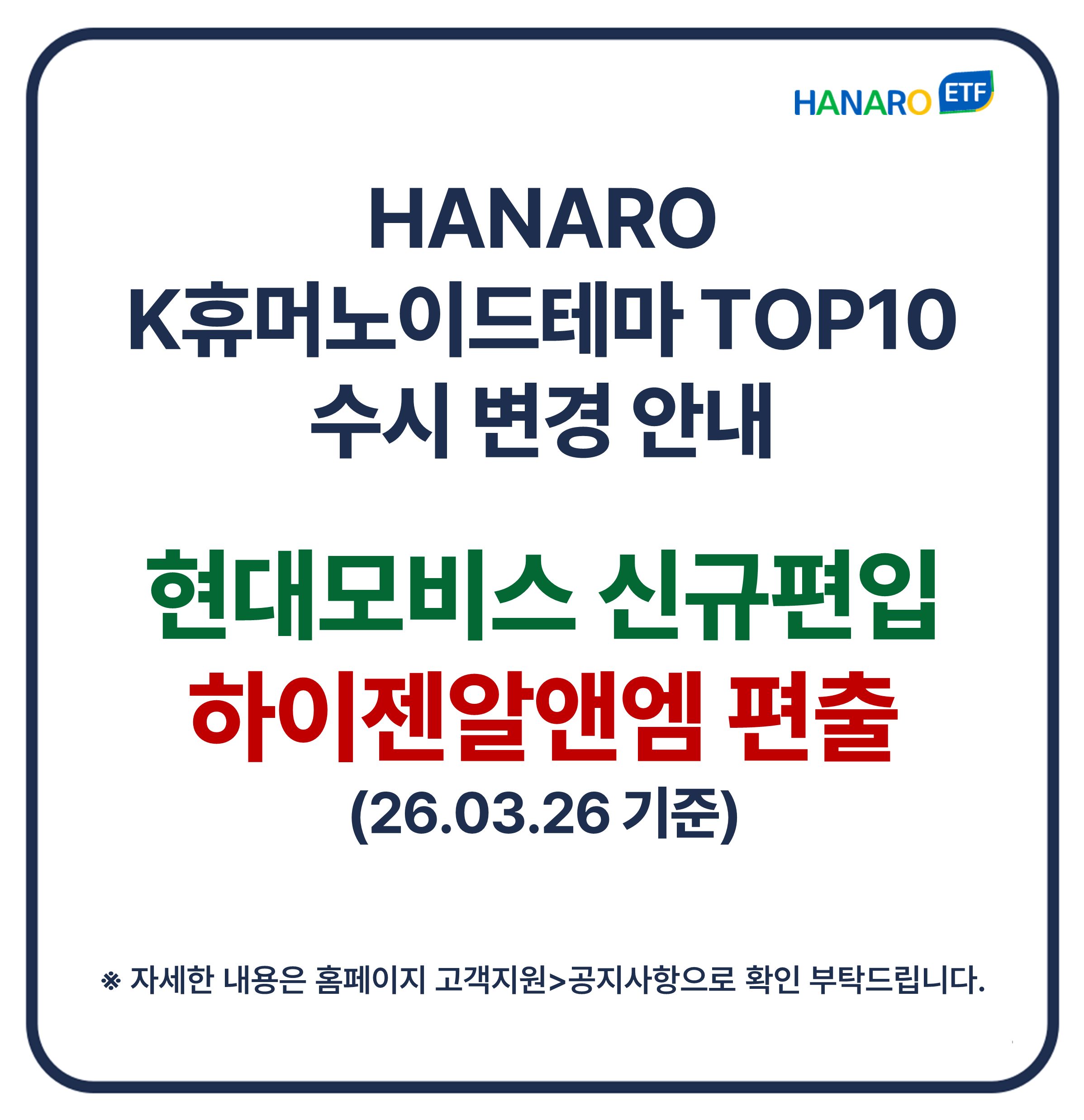 - HANARO K휴머노이드테마TOP10 수시 변경 안내