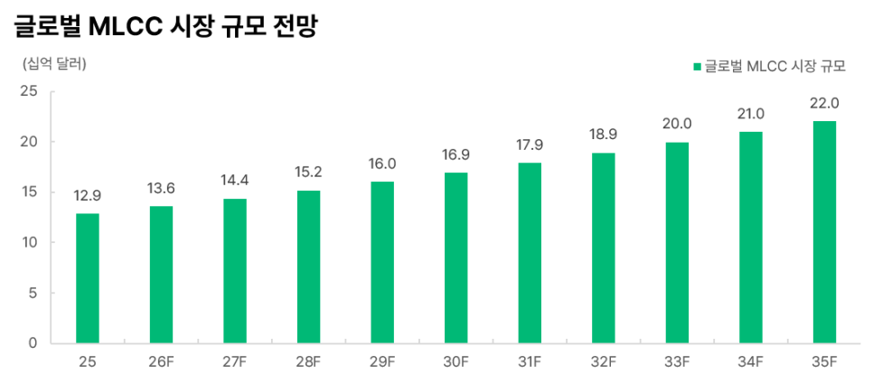 MLCC는 전자 기기 내에서 전류의 흐름을 조절하고 노이즈를 제거하는 필수 부품입니다. CPU나 GPU 같은 고성능 반도체가 안정적으로 작동할 수 있도록 전기를 보관했다가 필요한 순간 공급하는 역할을 수행하죠. 과거 스마트폰 고도화 시기에 한차례 폭발적인 성장을 거쳤던 MLCC 시장은 2024년 AI 인프라 투자를 기점으로 제2의 전성기를 맞이하고 있습니다.