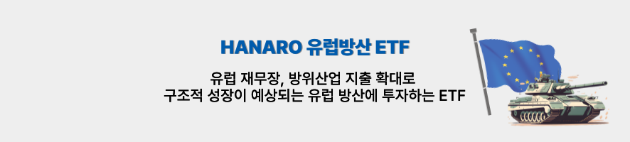 러시아-우크라이나 전쟁을 비롯한 글로벌 지정학적 리스크 심화 흐름 속에서 뜨거운 상승기류에 올라탄 글로벌 방위 산업! 📈특히, 유럽 방위 산업은 EU의 재무장 기조에 힘입은 강력한 펀더멘털을 증명 중입니다. 유럽 안보 지형의 변화와 국방비 지출 확대, 그에 따른 수혜가 예상되는 유럽 방산 업체로 관심이 쏠리고 있는 지금! 시장이 주목하고 있는 유럽의 주요 방산 기업은 어떤 곳들이 있을지 함께 알아보겠습니다. 📌 콘텐츠 핵심 요약 NATO에서 2035년까지 GDP의 5%까지 국방비 증액을 합의하는 등 유럽은 구조적 성장기에 진입 중 AI, 사이버 보안, 우주항공 등 차세대 기술 분야 투자가 확대되며 유럽 방산 분야는 기술 성장주로 도약 중 HANARO 유럽방산 ETF는 유럽 방산 기업에 집중 투자하여 유럽 방산 성장 모멘텀 수혜 기대 가능 유럽 방산 대격변, 최근 동향은? 👀 - 구조적 성장기 진입과 첨단 기술 투자 확대 ① 구조적 성장기 진입🛫 러시아-우크라이나 전쟁 이후 유럽은 국방 정책 패러다임의 전환을 맞이 └ 특히, 독일은 ‘시대적 전환(Zeitenwende)’을 선언하며 안보 환경이 완전히 바뀌었음을 시사 수십 년간 이어진 국방비 감축 기조가 끝나고 전례 없는 수준의 국방 예산 증액을 단행 └ NATO에서 2035년까지 GDP의 5%까지 국방비 증액을 합의 ‘유럽산 무기 구매(Buy European)’ 기조에 힘입어 노후 장비 현대화 및 재고 확충에 따른 유럽 권역 내 방산 기업 수혜 예상 ② 첨단 기술 성장주로의 도약🚀 전통적인 전차, 전투기 플랫폼을 넘어 AI, 사이버 보안, 우주항공, 무인 시스템 등 차세대 핵심 기술 분야 투자 확대 안정적인 수주 잔고 기반의 가치주 → 미래 전장을 주도할 기술 성장주 주요 방산 기업들의 수주 잔고 및 주가의 동반 상승을 통해 유럽 방위 산업의 강력한 펀더멘털 증명 지금 주목할 만한 유럽 방산 기업은?🔍 - 재래식 무기 및 플랫폼, 미래 전장 선도 기업까지 유럽의 방위 산업은 구조적 성장기에 진입함과 동시에 첨단 기술 성장 산업으로 도약하기 위한 준비를 마쳤습니다. 그렇다면 현 상황에서 주목할 만한 대표적인 유럽 방산 기업은 어떤 곳이 있을지 자세히 살펴보겠습니다. 재래식 무기의 강자, 플랫폼의 거인들 라인메탈 (Rheinmetall): 독일 지상전의 심장 - 우크라이나 전쟁 이후 무기 수요 폭증의 대표적 수혜 기업 ✅ Point 1. 독보적인 지상 플랫폼 레오파르트2(Leopard 2) 전차의 주포와 푸마(Puma), 링스(Lynx) 같은 최첨단 장갑차를 생산하며 지상전 기술을 선도하고 있습니다. ✅ Point 2. 유럽 최대 탄약고 라인메탈의 155mm 포탄 생산 능력은 유럽 최대 규모를 자랑하는 만큼, 현재 전장에서 가장 시급한 '탄약 부족' 문제 해결의 열쇠를 쥐고 있습니다. ✅ Point 3. 높아지는 수요와 미래 투자 독일 정부를 비롯한 NATO 회원국의 대규모 주문이 이어지는 가운데, 우크라이나 현지에 탄약 생산을 위한 합작법인을 설립하는 등의 전략적 투자를 단행 중입니다. BAE 시스템즈 (BAE Systems): 글로벌 방산 전투 플랫폼의 거인 - 육해공 모든 영역에서 막강한 영향력을 보유한 영국 대표 방산 기업 ✅ Point 1. 전천후 포트폴리오 유로파이터 타이푼(Eurofighter Typhoon) 전투기부터 F-35 전투기의 핵심 항공전자 장비, 최신예 Type 26 군함에 이르기까지, 전장을 지배하는 핵심 플랫폼을 공급합니다. ✅ Point 2. NATO의 핵심 무기 공급 체인 미국-영국 동맹의 방산 허브이자 NATO의 전략 무기 인프라를 책임지는 핵심적인 역할을 수행합니다. *출처: 라인메탈 공식 홈페이지 / BAE Systems 공식 홈페이지 사프란 (Safran): 하늘의 지배자를 꿈꾸는 엔진의 명가 - 타의 추종을 불허하는 항공기 엔진 기술로 미래 하늘을 설계하는 프랑스 다국적 기업 ✅ Point1. 독보적 기술 신뢰성 항공기 엔진과 항공우주 부품 분야에서 세계적인 리더로 자리매김하며, 뛰어난 기술력과 신뢰성을 인정받고 있습니다. ✅ Point 2. 유럽 차세대 전투기 개발 중추 사프란은 유럽의 유럽의 제공권을 책임질 *FCAS에서 엔진 개발을 총괄하는 핵심 파트너입니다. *FCAS란: 2040년 배치를 목표로 프랑스와 독일을 중심으로 공동으로 추진하는 유럽의 차세대 6세대 전투기 개발 프로젝트 레오나르도 (Leonardo): 기술의 르네상스를 이끄는 항공우주 설계자 - 헬리콥터와 훈련기 시장의 강자이자 첨단 전자 기술의 선두주자로 꼽히는 이탈리아 방산의 자부심 ✅ Point 1. 글로벌 베스트셀러 AW 시리즈 헬리콥터와 고등훈련기 M-346은 NATO는 물론 중동, 아프리카, 아시아 등 전 세계 시장에서 큰 사랑을 받고 있습니다. ✅ Point 2. 첨단 기술력의 집약체 단순히 기체를 만드는 것을 넘어, 항공전자, 센서, 전자전 시스템 등 전투기의 '두뇌'와 '신경'에 해당하는 첨단 기술을 대규모로 공급합니다. ✅ Point 3. 이탈리아 방산 수출의 첨병 뛰어난 기술력을 바탕으로 이탈리아 방위 산업 수출을 이끄는 핵심 기업으로 자리매김했습니다. *출처: 사프란 공식 홈페이지 / 레오나르도 공식 홈페이지 미래 전장의 기술을 선도하는 기업 탈레스 (Thales): 보이지 않는 전장을 지배하는 기술의 마에스트로 - 첨단 전자 기술로 유럽 방산의 현대화를 견인 중인 프랑스를 대표 기업 ✅ Point 1. 미래 기술 집중 투자