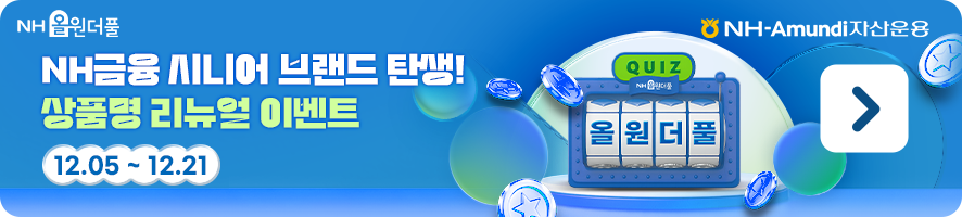 NH-Amundi자산운용 준법감시인 심사필 제2025-1252호(2025.12.12. ~ 2026.12.11.) - 본 내용은 정보제공의 목적으로 작성된 것이며 고객에게 수익증권의 매입을 권유하기 위하여 작성된 자료가 아닙니다. 따라서 어떠한 경우에도 본 자료와 자료 내 포함된 자료 는 법적 책임소재의 증빙자료로 사용할 수 없습니다. - 본 내용은 신뢰할 만한 자료 및 정보로부터 얻어진 내용이나 향후 시장 상황 변경으로 전망이 변경될 수 있습니다. - 집합투자증권은 예금자 보호법에 따라 보호되지 않습니다. - 과거의 운용 실적이 미래의 수익률을 보장하는 것은 아닙니다. - ETF 거래 수수료, 증권거래비용, 기타비용 등이 추가로 발생할 수 있습니다. - 집합투자증권은 자산 가치 변동, 환율변동, 신용등급 하락 등에 따라 투자원금의 손실(0~100%)이 발생할 수 있으며, 그 손실은 투자자에게 귀속됩니다. - 집합투자증권을 취득하시기 전에 투자대상, 보수, 수수료 및 환매방법 등에 관하여 (간이)투자 설명서 및 집합투자규약을 읽어 보시기 바랍니다. - 금융상품 판매업자는 이 금융투자상품에 관하여 충분히 설명할 의무가 있으며, 투자자는 투자에 앞서 그러한 설명을 충분히 들으시기 바랍니다. - 투자 국가의 시장, 정치 및 경제상황 등에 따른 위험으로 자산 가치의 손실이 발생할 수 있습니다. - 과세기준 및 과세 방법의 향후 세법 개정 등에 따라 변동될 수 있습니다. |