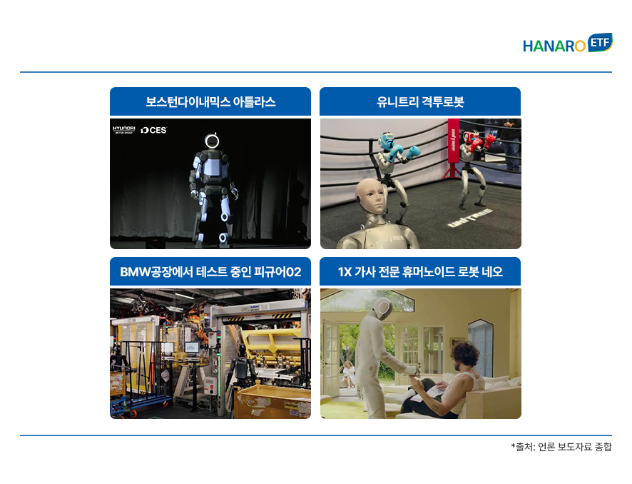 📌핵심 요약 ✅ CES 2026에서 공개된 보스턴다이내믹스의 뉴 아틀라스(New Atlas)의 2028년 제조 현장 투입을 필두로 휴머노이드 산업은 본격적인 상용화 단계에 진입 ✅ 현재 로봇 밀도 세계 1위인 대한민국은 반도체·배터리·부품 공급망의 완결성과 견고한 민관 협력체를 바탕으로 휴머노이드 산업의 글로벌 핵심 거점으로 부상 중 ✅ HANARO K휴머노이드테마TOP10 ETF는 휴머노이드 테마 중 실질적인 수혜가 예상되는 핵심 10개 종목을 압축한 ETF |