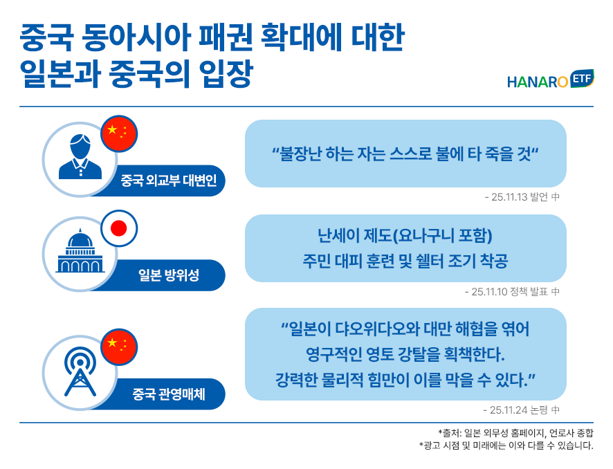 최근 일본과 중국의 갈등이 격화되고 있습니다. 지난달 취임한 일본 다카이치 사나에 총리가 '친미·친서방' 노선을 확실히 하며 중국을 자극했기 때문입니다. 특히 11월 7일, "대만에서 무력 충돌이 발생하면 일본이 개입할 수 있다"는 취지의 강경 발언을 내놓으면서 중국의 거센 항의를 받고 있습니다.
