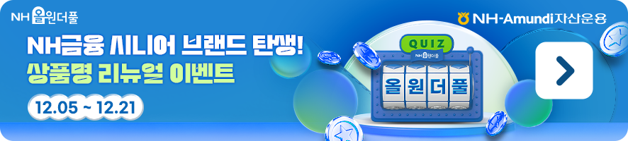 NH-Amundi자산운용 준법감시인 심사필 제2025-1200호(2025.12.02. ~ 2026.12.01.) - 집합투자증권은 자산 가치 변동, 환율변동, 신용등급 하락 등에 따라 투자원금의 손실(0~100%)이 발생할 수 있으며, 그 손실은 투자자에게 귀속됩니다. - 집합투자증권을 취득하시기 전에 투자대상, 보수, 수수료 및 환매방법 등에 관하여 (간이)투자 설명서 및 집합투자규약을 읽어 보시기 바랍니다. - 금융상품 판매업자는 이 금융투자상품에 관하여 충분히 설명할 의무가 있으며, 투자자는 투자에 앞서 그러한 설명을 충분히 들으시기 바랍니다. - 과거의 운용 실적이 미래의 수익률을 보장하는 것은 아닙니다. - 집합투자증권은 예금자 보호법에 따라 보호되지 않습니다. - ETF 거래 수수료, 증권거래비용, 기타비용 등이 추가로 발생할 수 있습니다. - 시장, 정치 및 경제 상황 등에 따른 위험으로 자산 가치의 손실이 발생할 수 있습니다. - 본 자료는 신뢰할 만한 자료 및 정보로부터 얻어진 내용이나 향후 시장 상황 변경으로 전망이 변경될 수 있습니다. - 본 자료에 수록된 정보는 단순 정보제공 목적이며, 투자의 판단을 위한 참고자료로 활용되어서는 안됩니다. |
