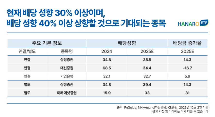 구체적인 시행 방안이 윤곽을 드러내고 정책 불확실성이 해소되면서, 시장의 이목이 다시금 배당 관련주로 쏠리고 있죠. 특히, 높은 배당 성향을 가진 증권주가 대표적 수혜 업종으로 꼽히며 관련 ETF에 대한 관심도 뜨겁습니다.